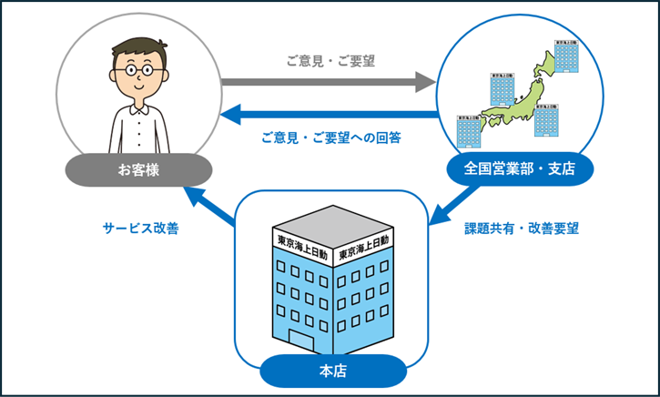 お客様から寄せられた声をもとに、更なるサービス向上に活かしてまいります。当社は、お客様から寄せられた声を大切に、「本当に信頼されるお客様起点の会社」を実現してまいります。