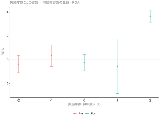 定量開示を実施した企業において、開示から3年目にROAが有意に上昇していたことが確認されました。