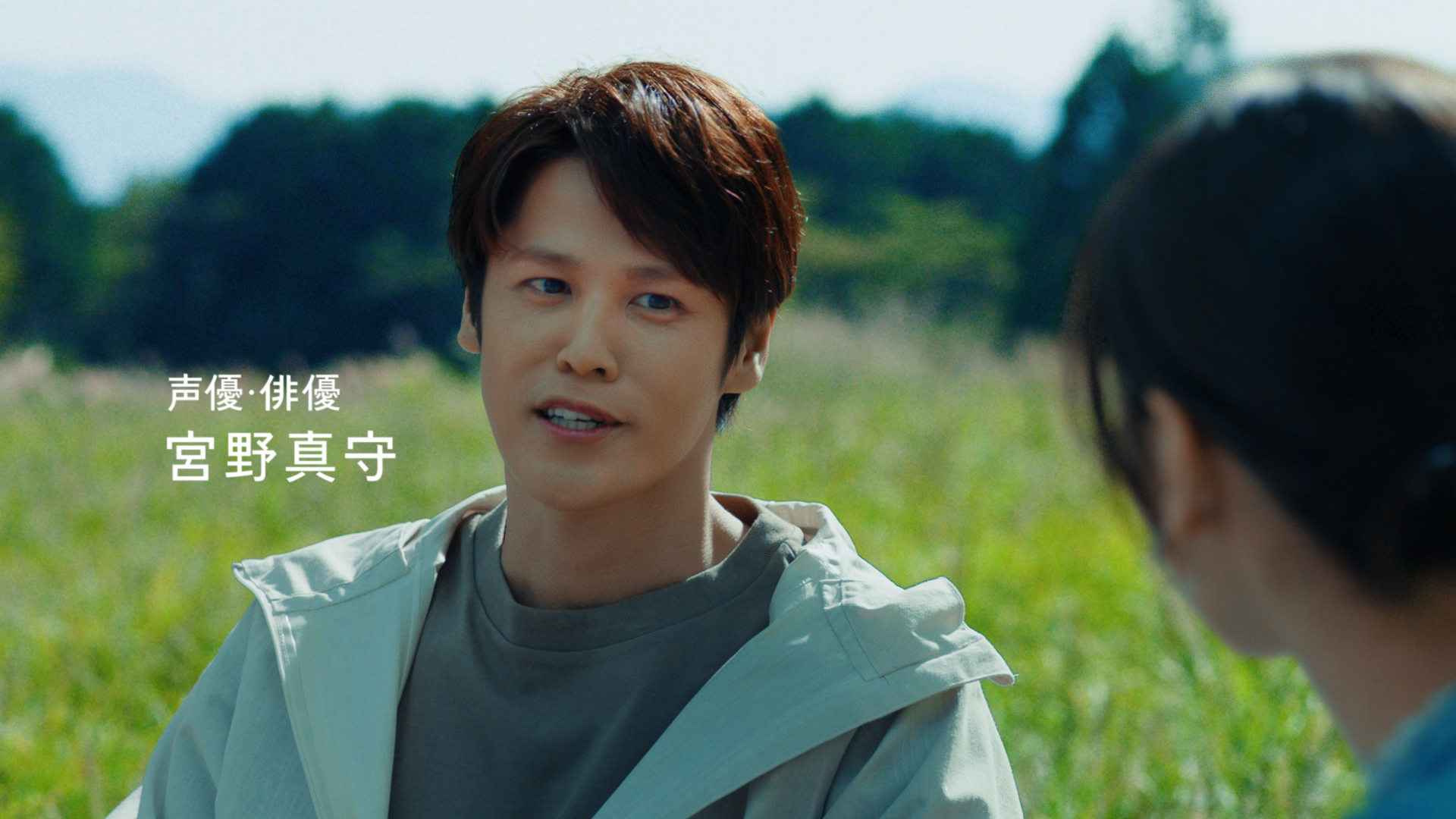 CMの中で、北川さんからのリクエストで「富士山」を演じることになった宮野さん。北川さんは本番で初めて聞いた宮野さんの渾身の“富士山の声”に、思わず笑ってしまうも、一発OK!終始活気と笑いに満ちたあたたかな雰囲気と、自然体なお二人の表情にぜひご注目ください。