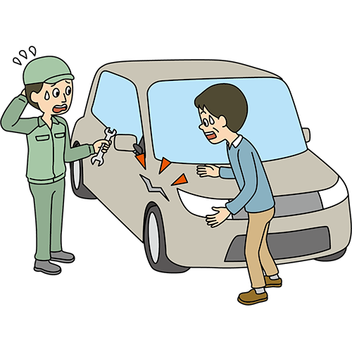 - 洗車のために預かった車に洗車器具をぶつけ、ボンネットに傷をつけてしまった。