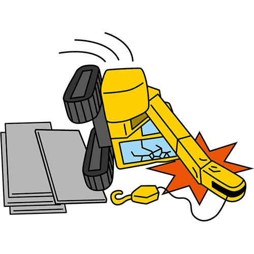 - リースした建設機械を工事現場内で使用中、誤って転倒させて破損した。