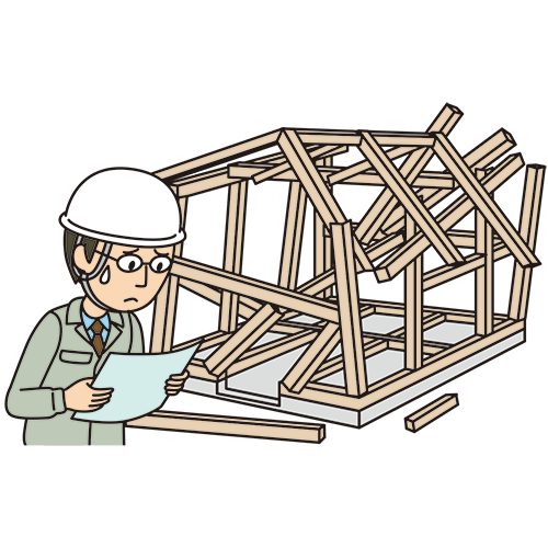 柱に使用していた木材の材質上の欠陥によって建設中の建物が倒壊した。