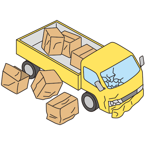 工事現場への輸送中にトラックが柱に衝突し、積んでいた資材が破損した。