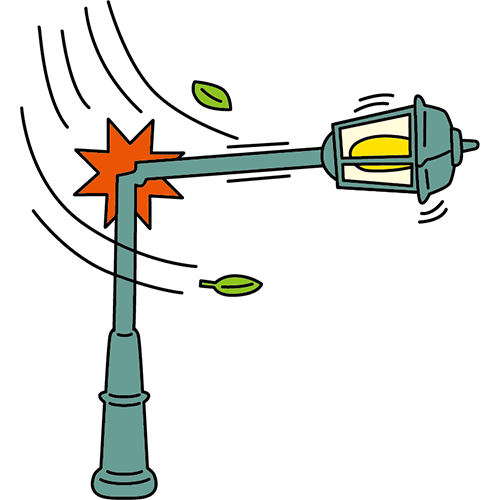 お支払対象となる事故の「(2)風災、雹(ひょう)災、雪災」で補償の対象外となる街路灯、外灯、防球ネット設備等の風災危険設備について、風災、雹(ひょう)災、雪災によって生じた損害を補償します。