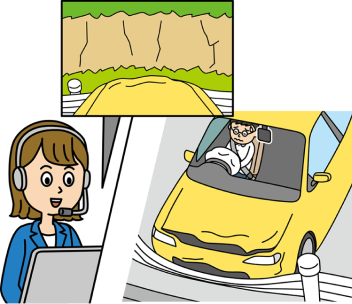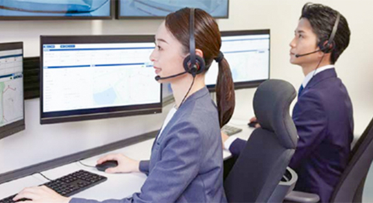 - 事故発報1件に対し、2名のオペレーターと管理者の3名体制で対応。1名が運転者と通話、もう1名が状況に応じて通報し、管理者がオペレーターのサポートを行います。なお、緊急車両が現場に到着するまで運転者との通話を続けます。