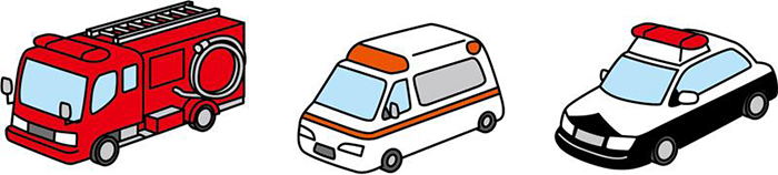 - 緊急自動車が近づいてきたら、落ち着いて進路をゆずりましょう