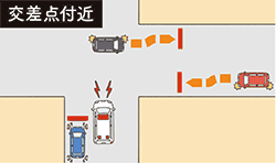 交差点付近を走行中に緊急自動車が近づいてきたとき