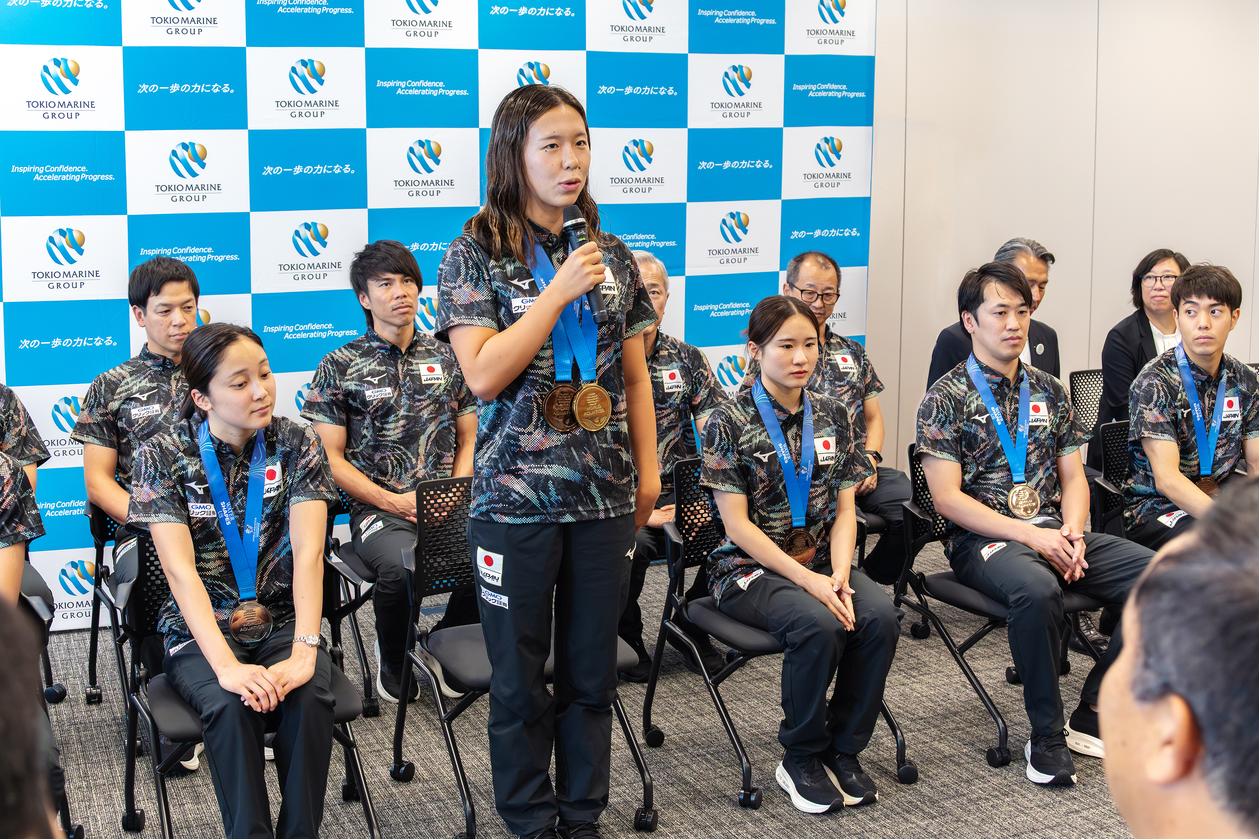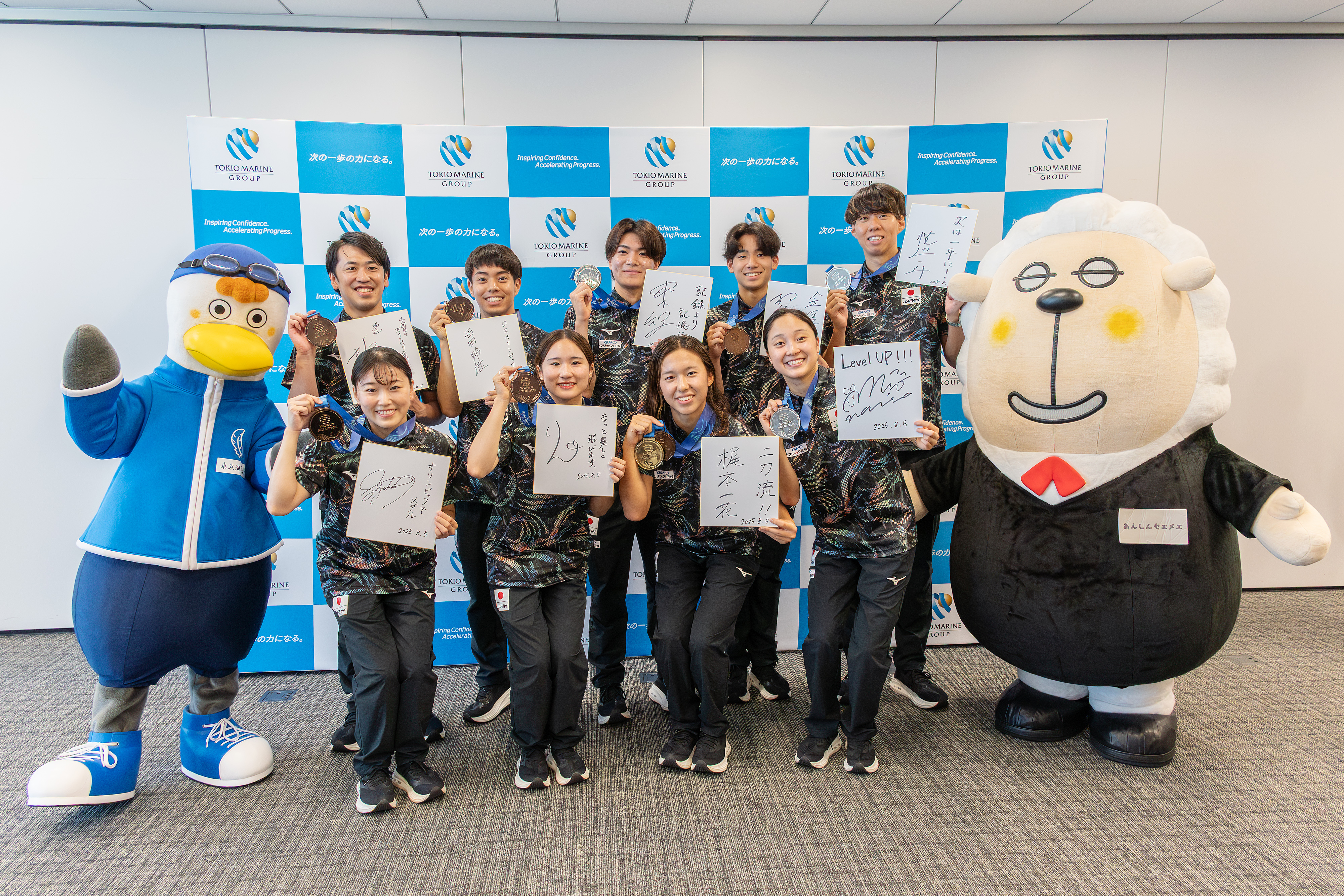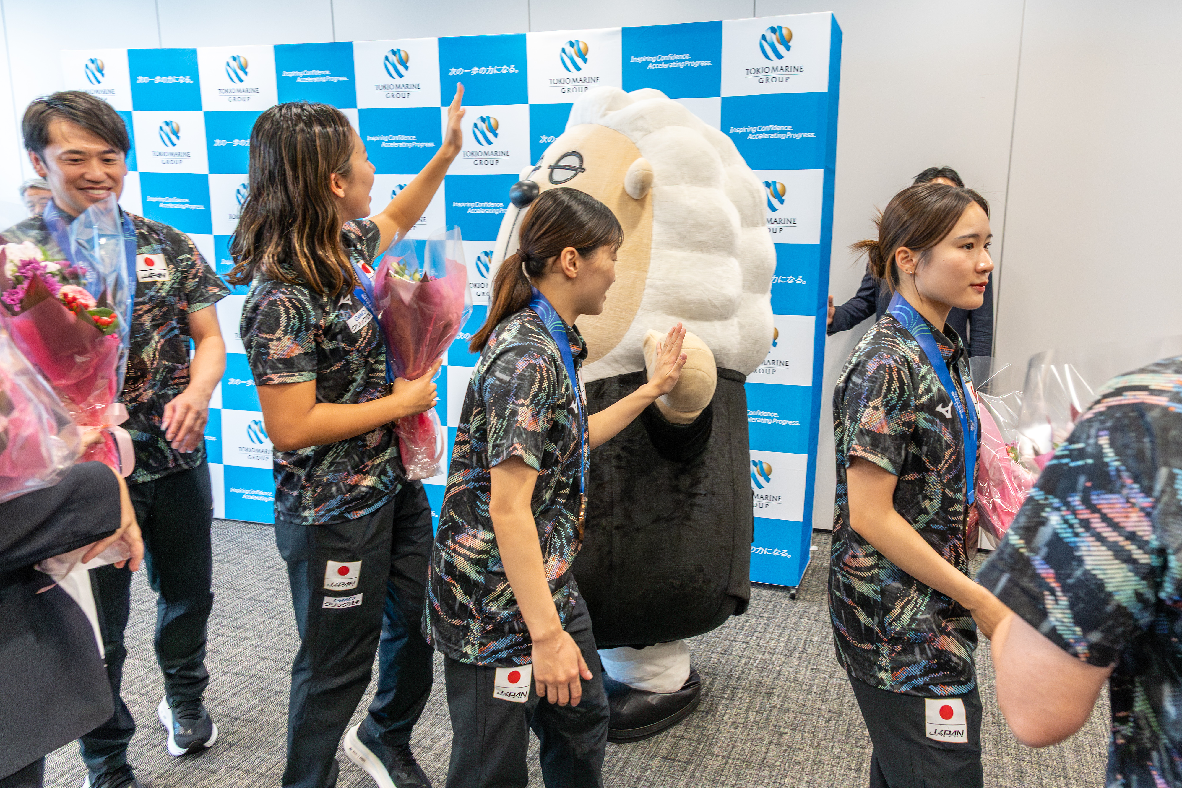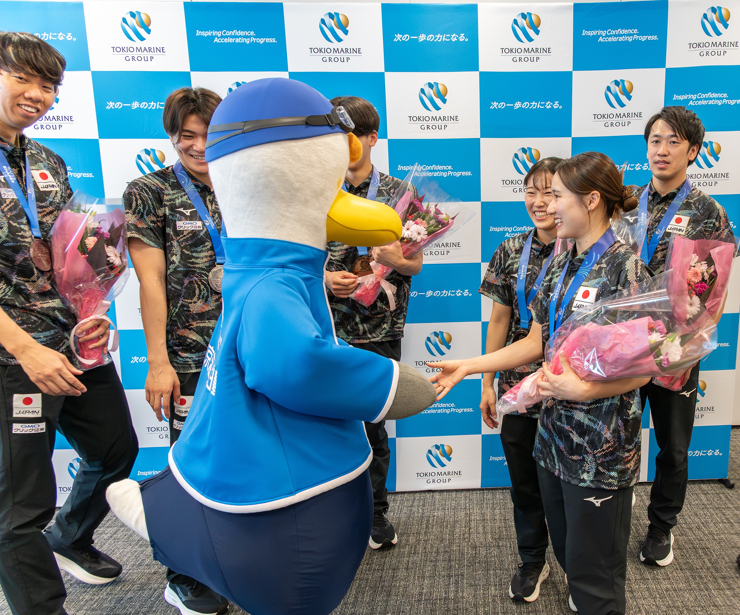 東京海上日動企画は、オリンピアンや日本代表選手と一緒に泳ぐ「ふれあいリレー」と、参加チーム同士でタイムを競いながらジュニアオリンピックの記録を目指す「チャレンジリレー」の2種目を実施し、約210名の方にご参加いただきました。他にも、競泳・アーティスティックスイミング・水球のエキシビションや体験教室などさまざまなプログラムが実施され、会場は大いに盛り上がりました。
